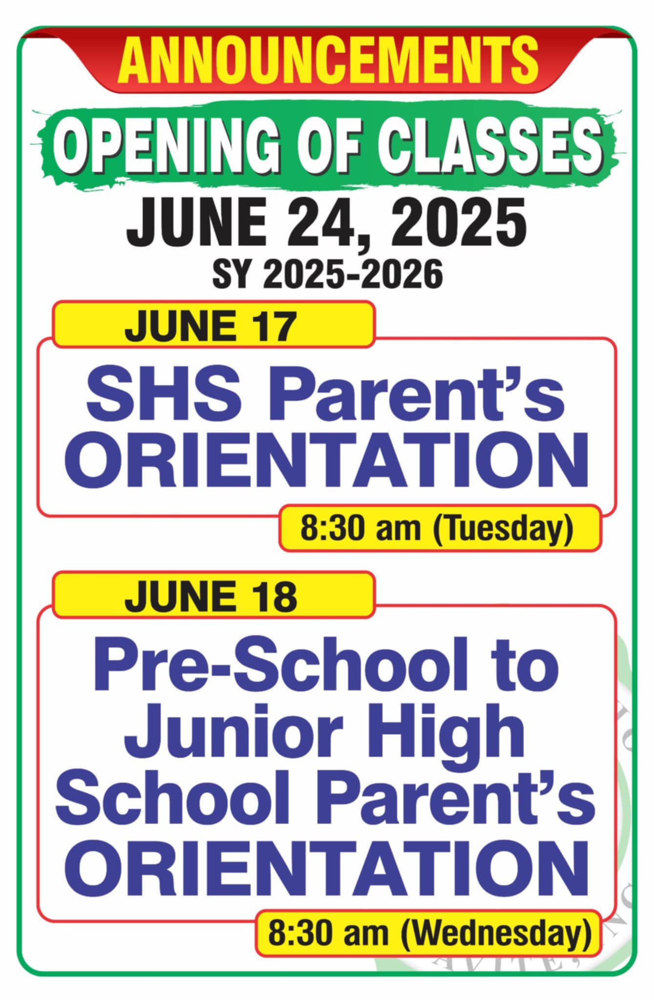 ANNOUNCEMENT: Opening of Classes SY 2025-2026