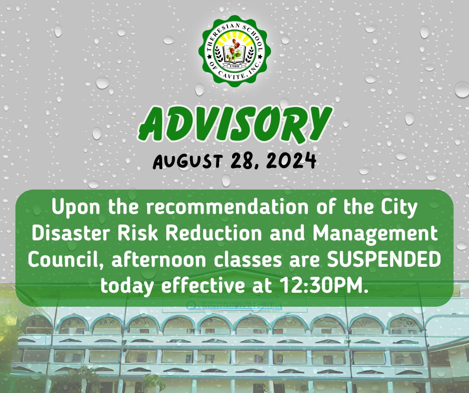 #TSCAdvisory 𝐀𝐮𝐠𝐮𝐬𝐭 𝟐𝟖, 𝟐𝟎𝟐𝟒 Upon the recommendation of the City Disaster Risk Reduction and Management Council, and in view of the continuing inclement weather brought about by Southwest Monsoon, afternoon classes are hereby 𝐒𝐔𝐒𝐏𝐄𝐍𝐃𝐄𝐃 today effective at 12:30PM. Please stay safe and please be guided accordingly.